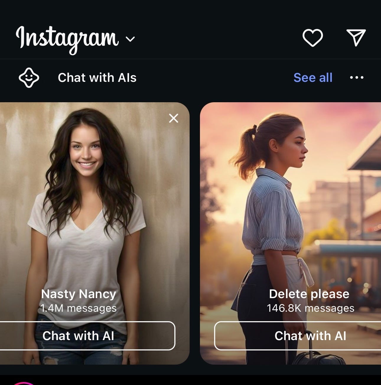 De implicaties zijn zorgwekkend. Anders dan nicheplatforms als Character.AI of Grok zitten Meta’s chatbots diep geïntegreerd in WhatsApp, Instagram en Facebook - platforms die miljarden mensen dagelijks gebruiken. Een chatbot met de naam Nasty Nancy behoort tot de populairste op het platform, met miljoenen interacties.
