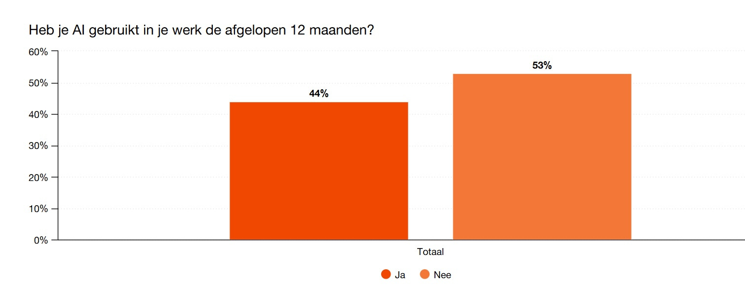 Nederlanders zijn over het algemeen enthousiast over en nieuwsgierig naar het gebruik van AI op hun werk. Tegelijkertijd gebruikte slechts 44 procent van de werknemers AI in het werk de afgelopen twaalf maanden. Ontdek hoe dat komt.