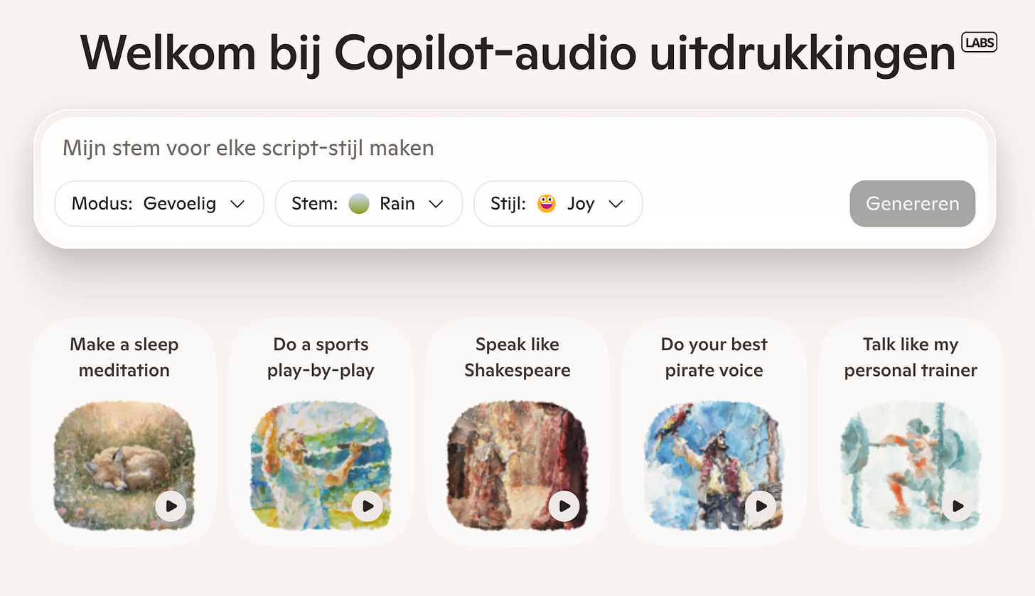 Het spraakmodel MAI-Voice-1 wordt al gebruikt in Copilot Daily en de Podcasts-functie. Nieuwsgierigen kunnen ermee spelen in Copilot Labs, waar je het prompts kunt geven en kunt kiezen welke stem je wilt horen. Het taalmodel wordt momenteel publiekelijk getest en rolt de komende weken uit voor bepaalde tekstfuncties in Copilot.