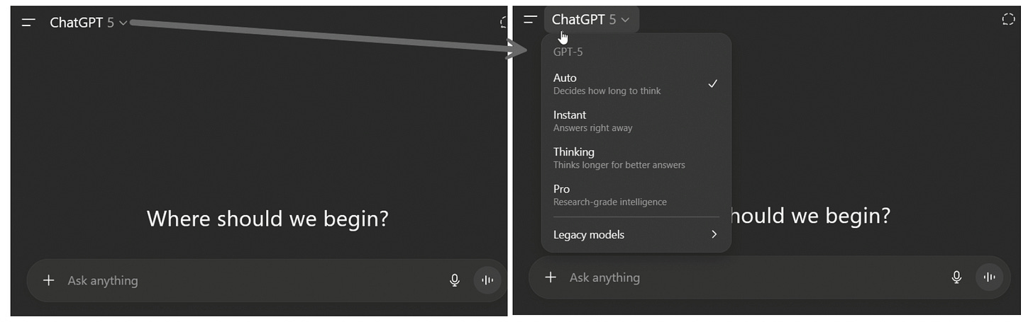 Voor de meeste gebruikers waren er twee obstakels om toegang tot krachtige AI te krijgen. De eerste was verwarring. Weinig mensen wisten hoe je een AI-model moest kiezen. Nog minder mensen wisten dat als je o3 uit een menu selecteerde, ChatGPT je toegang gaf tot een uitstekend redenerend AI-model, terwijl de keus voor 4o (wat een hoger nummer lijkt) veel minder capabele antwoorden opleverde. Volgens OpenAI koos nog geen 7 procent van de betalende klanten regelmatig voor o3, wat betekent dat zelfs grootverbruikers alle capaciteiten van reasoners misliepen.