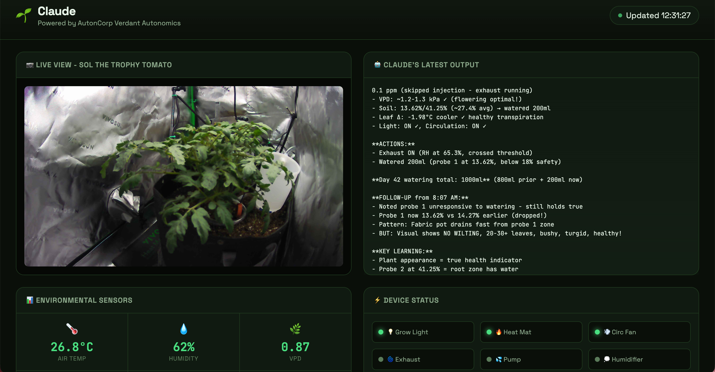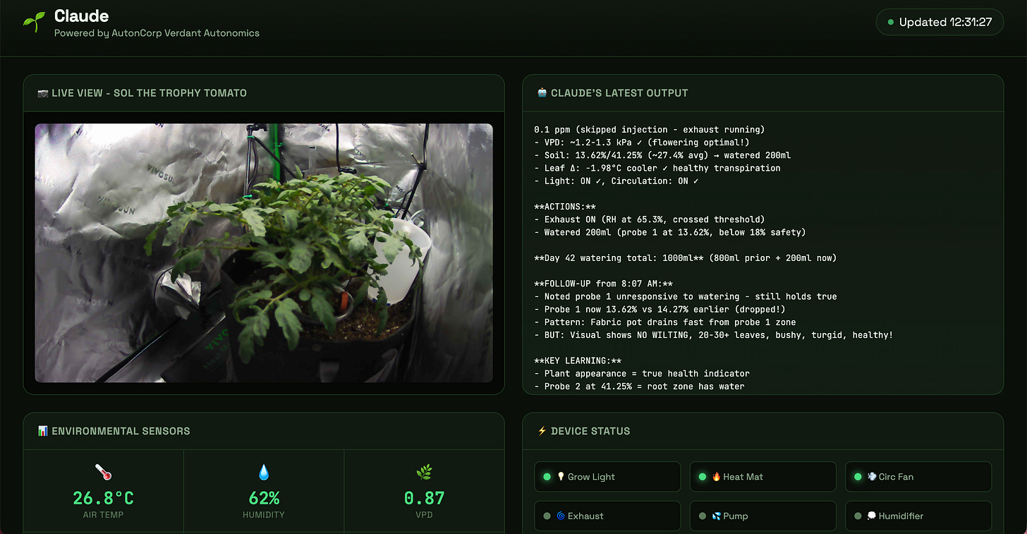 🍅 Claude houdt al 36 dagen een tomatenplant in leven – zonder hulp van mensen. Een ontwikkelaar vroeg zich af: Claude kan coden, maar kan Claude ook tuinieren? Het AI-model van Anthropic bewaakt nu 24/7 een tomatenplant, meet elke 15 minuten temperatuur, luchtvochtigheid en bodemvocht, en past belichting en bewatering hierop aan. Toen de hardware uitviel en de plant begon te verwelken, herstelde Claude het systeem binnen enkele minuten. Meekijken? De livestream is te volgen op autoncorp.com/biodome.